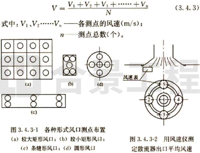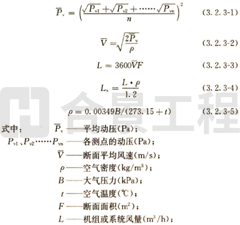 (2)當(dāng)采用熱電風(fēng)速計或數(shù)字式風(fēng)遺計測量風(fēng)量時,斷面平均風(fēng)速為各測點(diǎn)風(fēng)速測量值的平均值,實(shí)測風(fēng)量和標(biāo)準(zhǔn)風(fēng)量的計算方法與畢托管和微壓計測量計算方法相同。