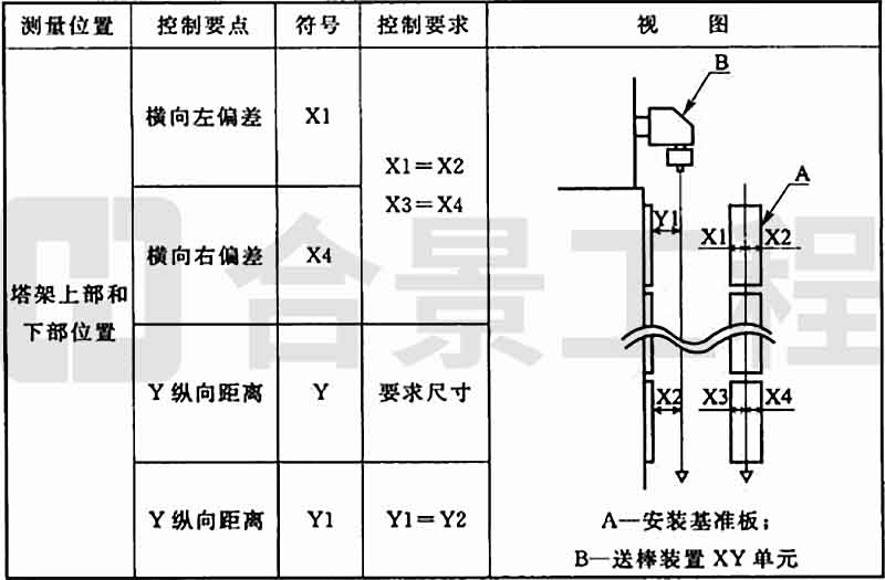 8.8.2 送棒裝置垂直度調(diào)整時(圖8.8.2),上下兩部位橫向及縱向允許偏差均應(yīng)為±0.5mm。